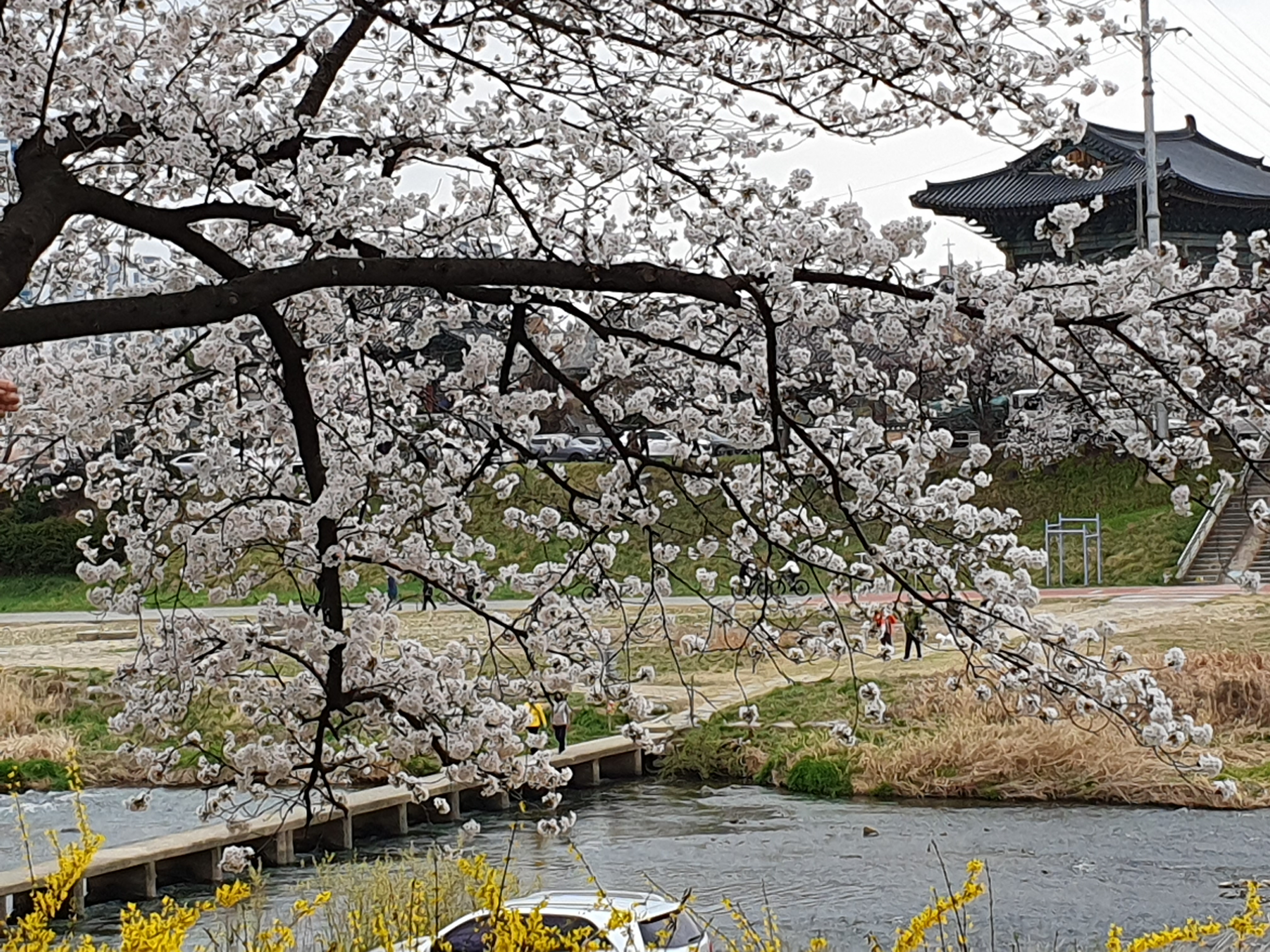 내를 따라 맑은 물은 흐르고 흐드러지게 핀 벚꽃. 너무너무 아름다웠습니다.