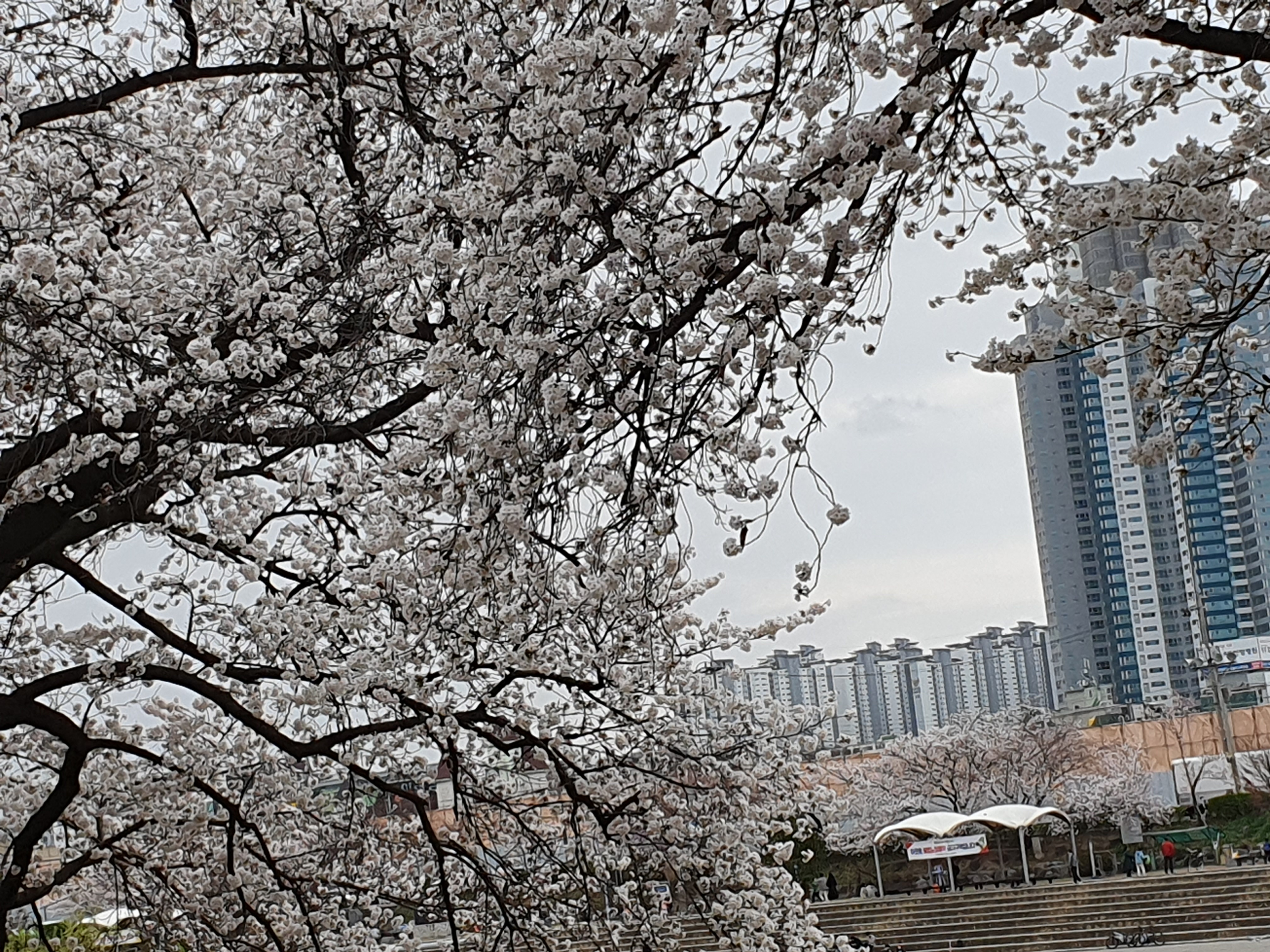 많은 시민들이 벚꽃 나무아래 즐거이 걷고 있었습니다.