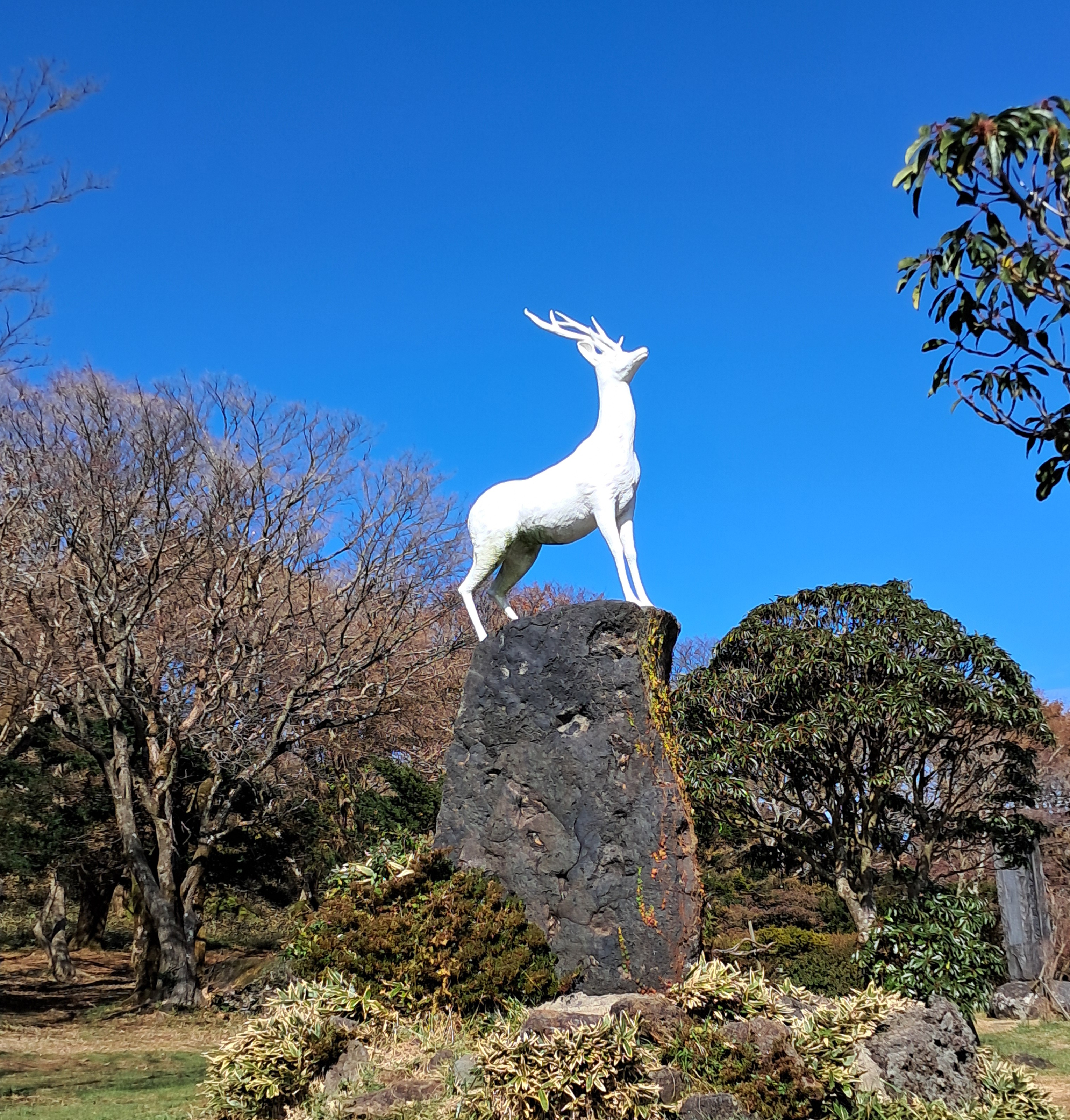 백록담 앞 , 하얀 사슴이 인상적이다.