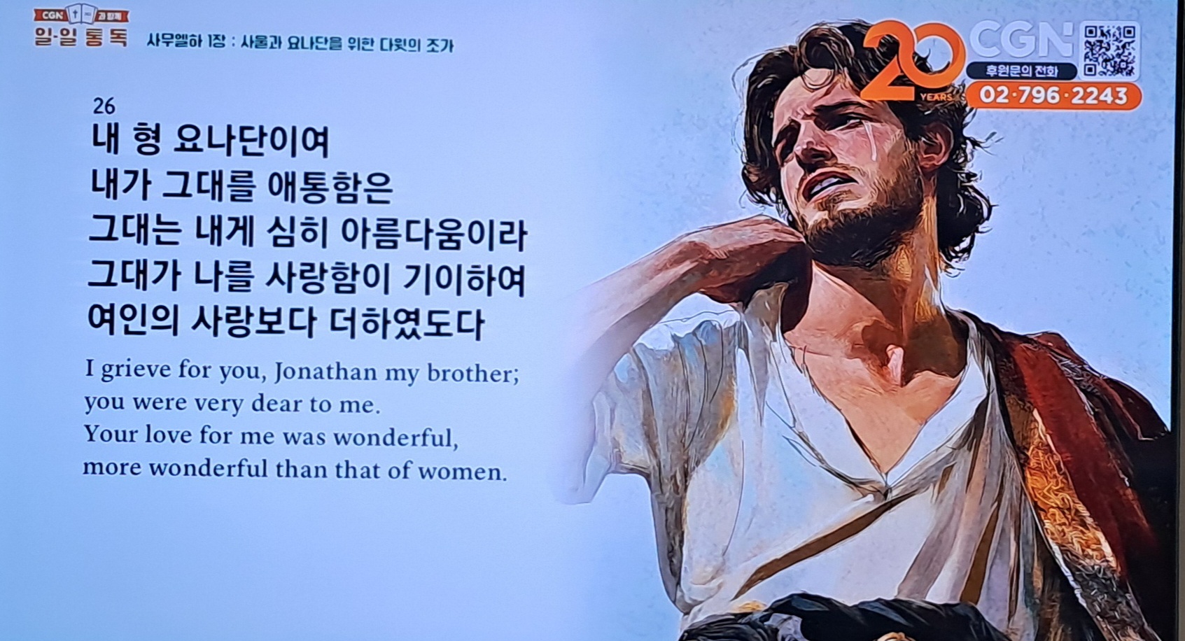 내 형 요나단이여 내가 그대를 애통함은 그대는 내게