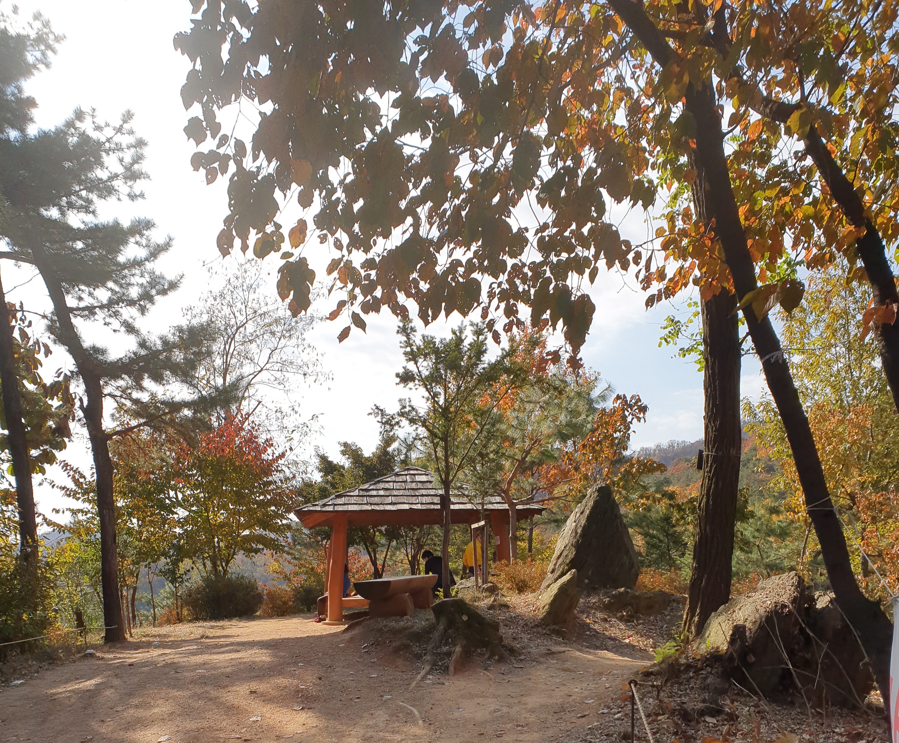 김밥 하나 햇볕 한 줌 섞어 점심을 먹는다. 왼쪽으로는 소나무 군락인데 솔향이 상큼하다. 몸이 아파본 사람은 치료해 주시는 아버지의 따뜻한 손길을 알리라.