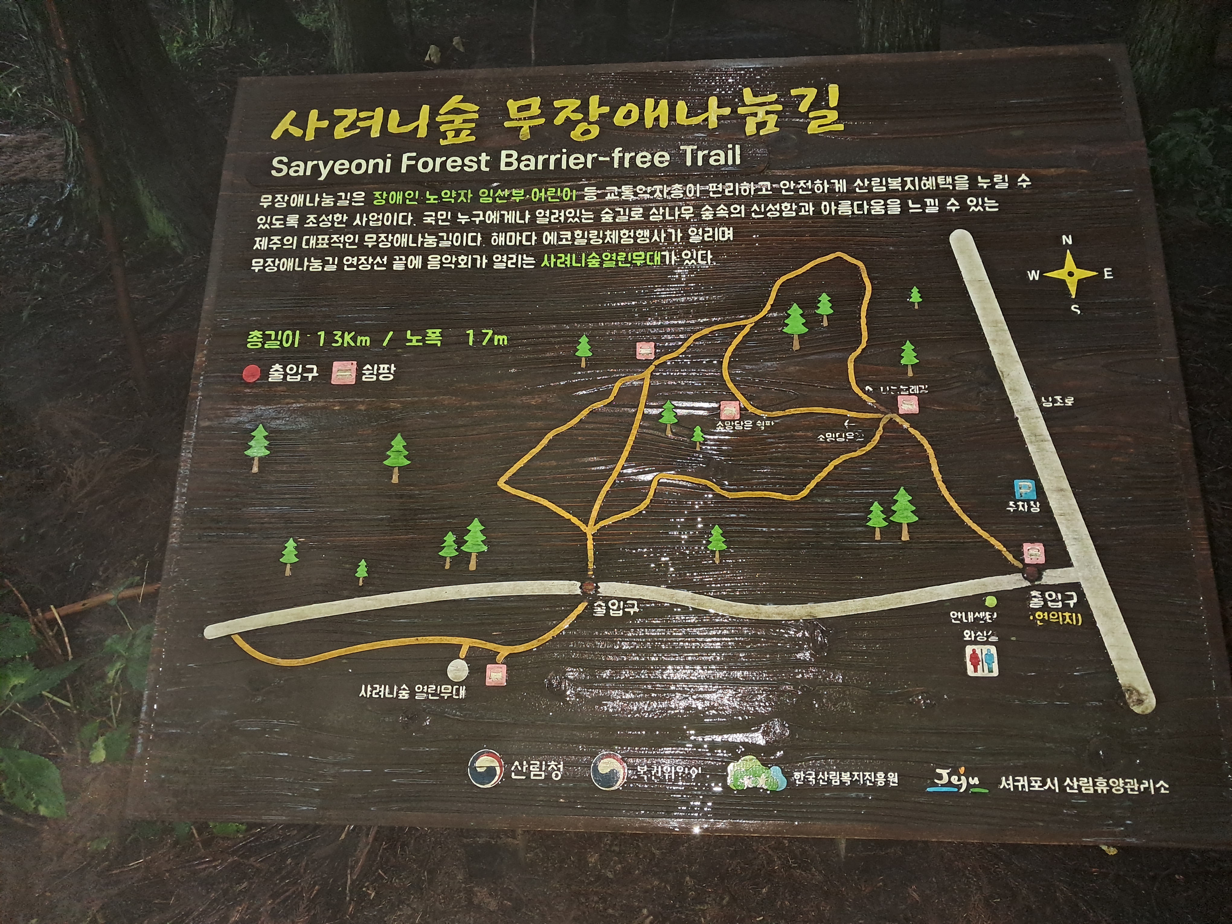 이슬비가 왔다. 편백 나무가 우람하다 ㆍ 향기가 너무 좋았다 ㆍ